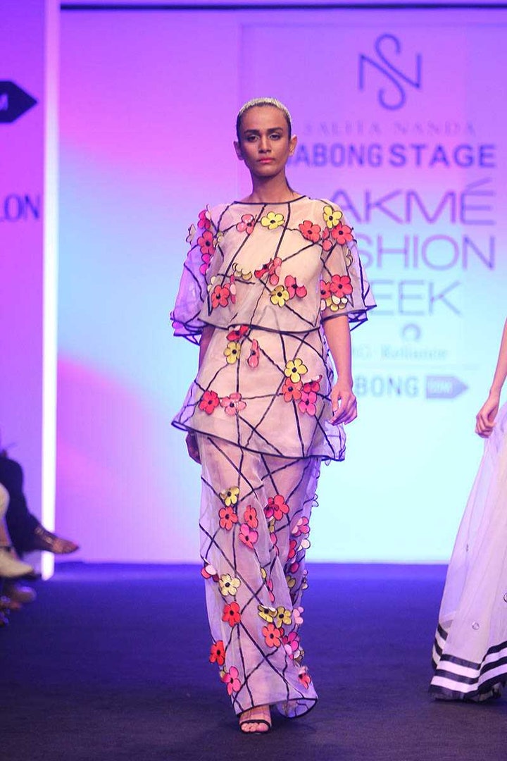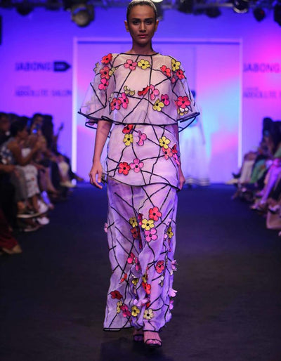 Regular price ₹ 20,000.00 Save ₹ -20,000.00Hand embroidered 3D Pop flower patched on white organza gown.