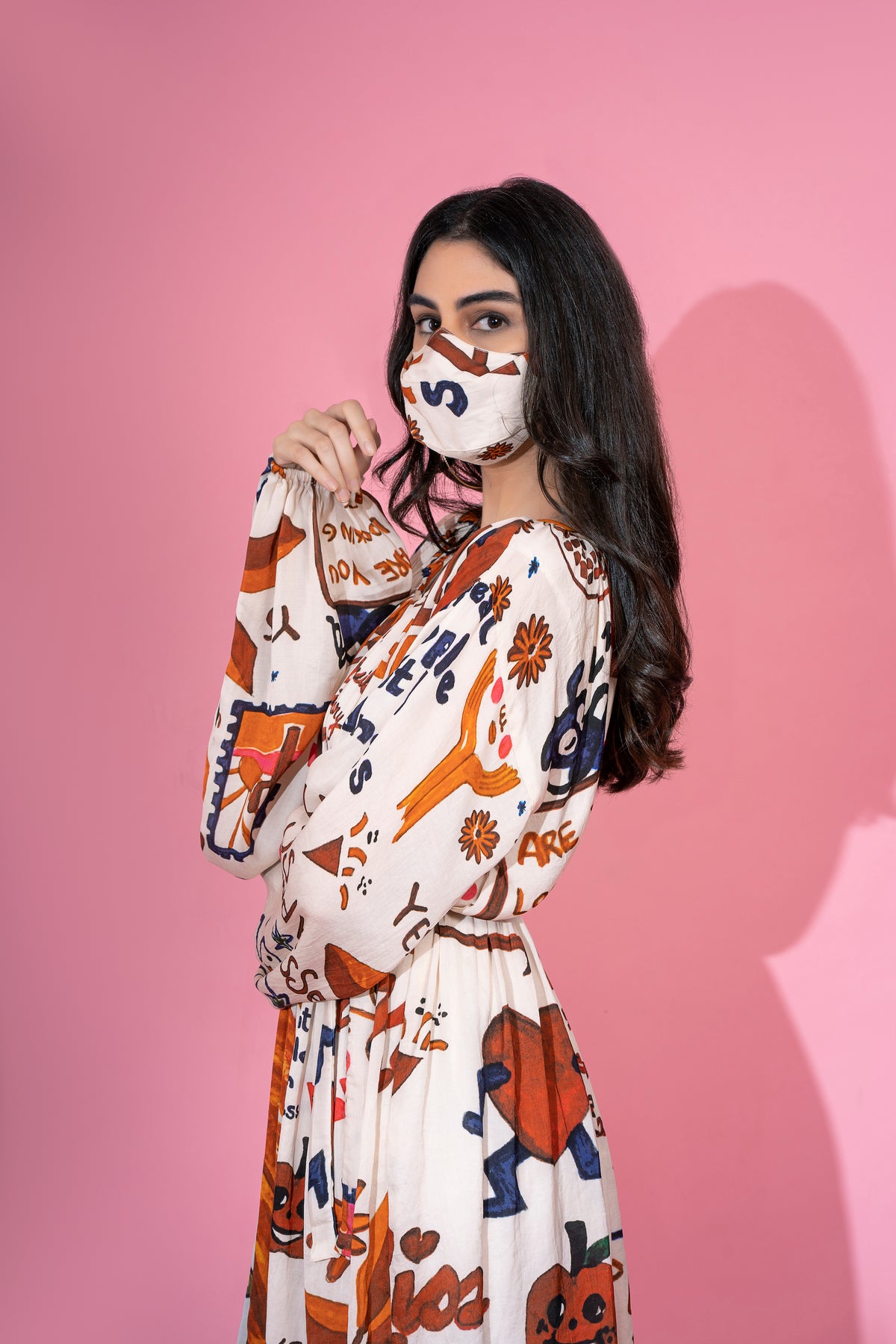 Regular price ₹ 1,250.00 Save ₹ -1,250.00The mask is crafted in 100% cotton fabric. The mask features intricate hand painted detailing (please note this is not digitally printed). They are handcrafted in original Salita Nanda prints. Crafted in 100% cotton, these face masks are triple-layered, with elastic bands to ensure a comfortable fit.