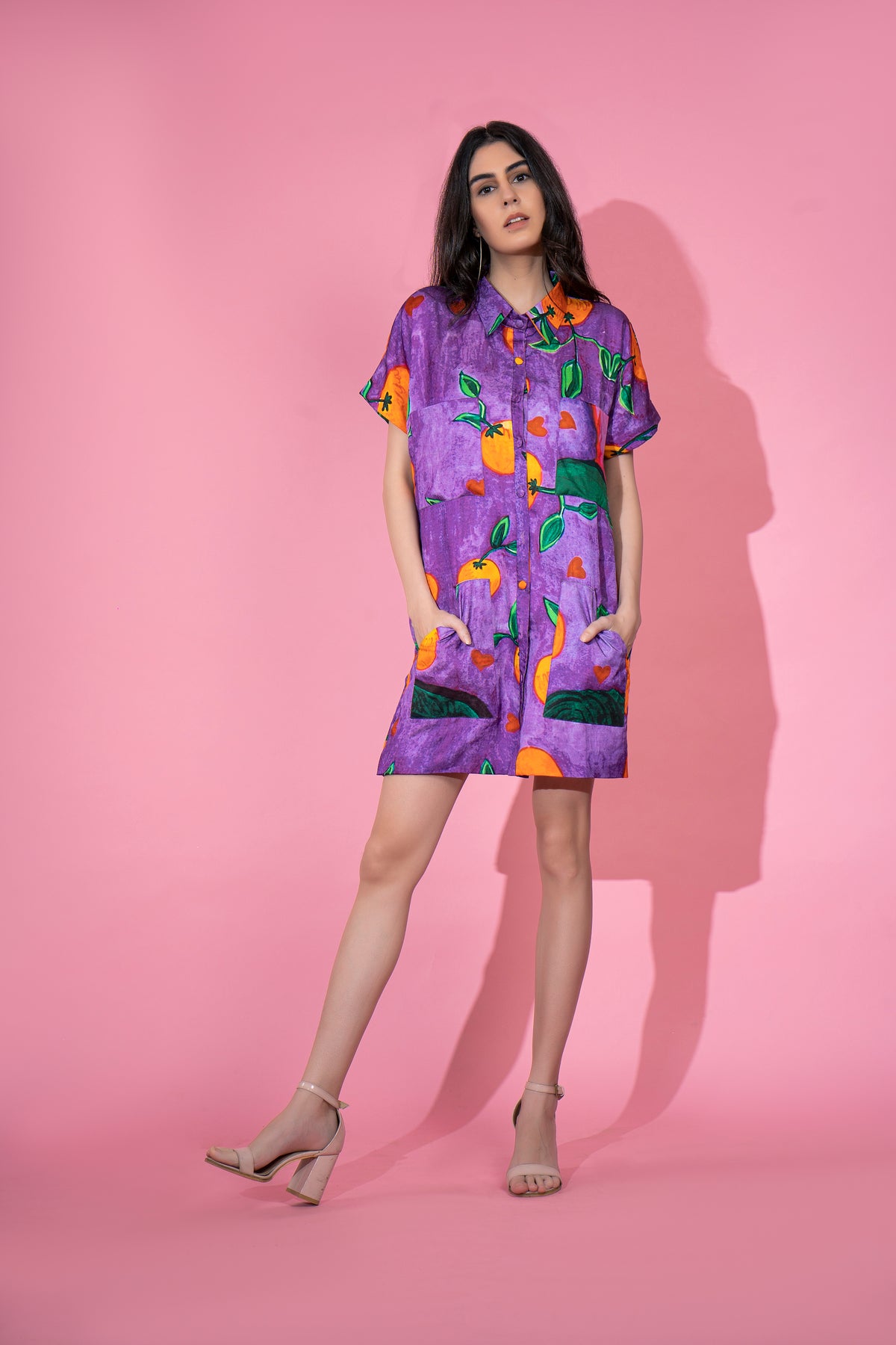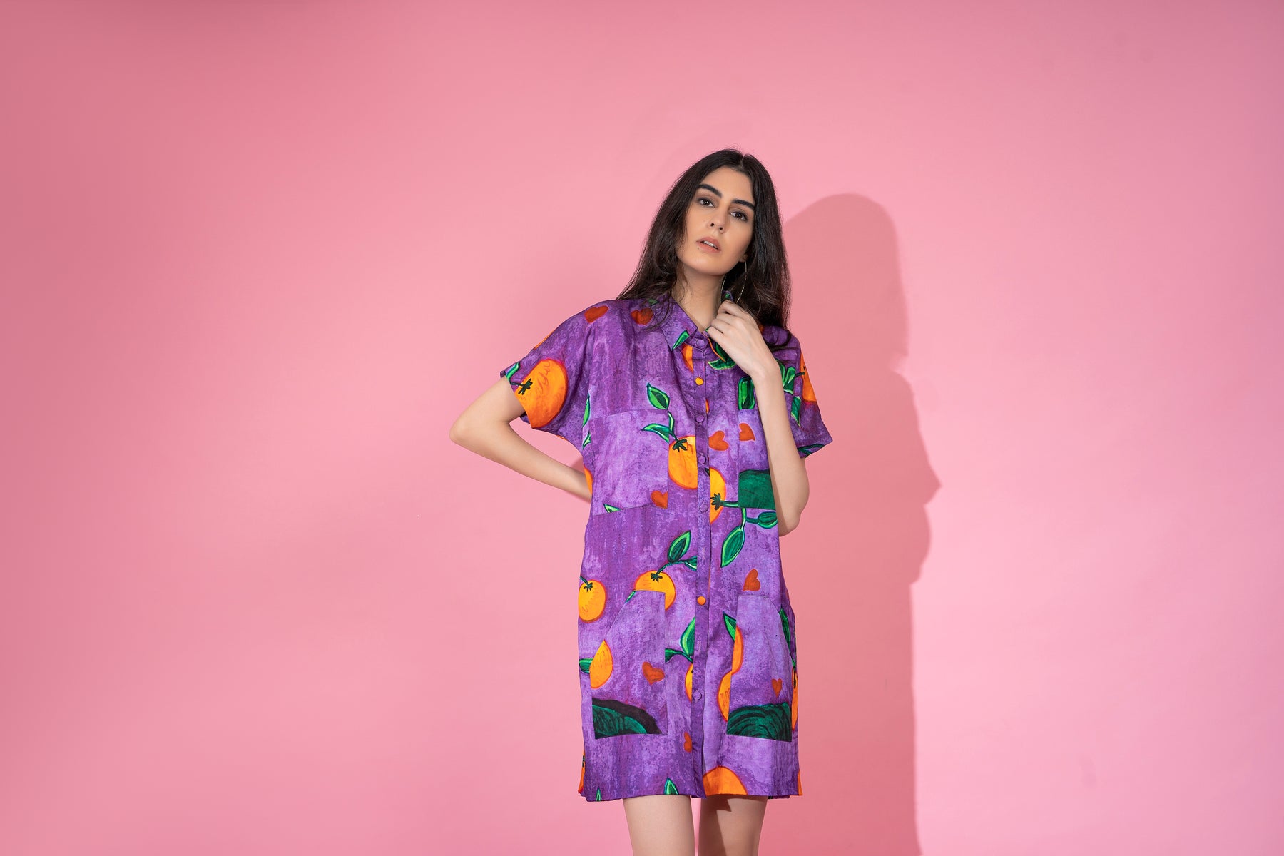 "ORANGE POP" PRINT SHIRT DRESS