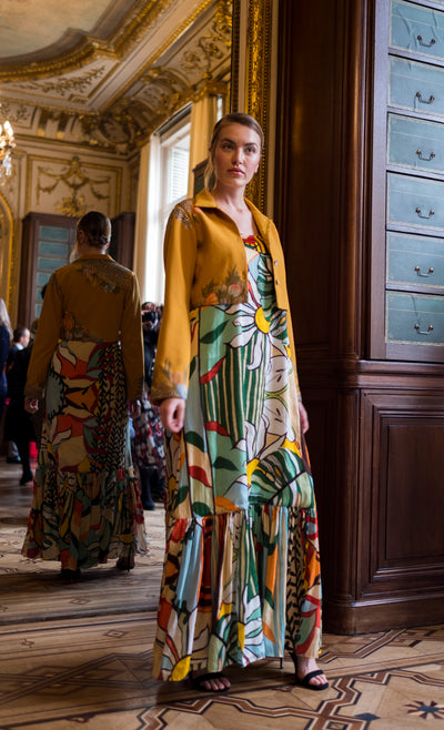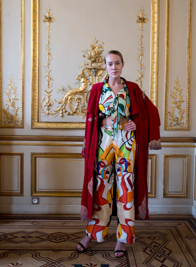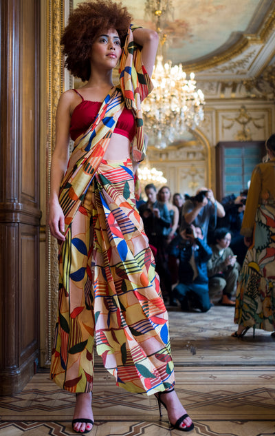 Regular price ₹ 20,000.00 Save ₹ -20,000.00This one of a kind statement piece is the perfect alternative to a 'regular' saree. Wear it like pants and drape the pallu across the body. Extremely comfortable and has a fun quirky print.