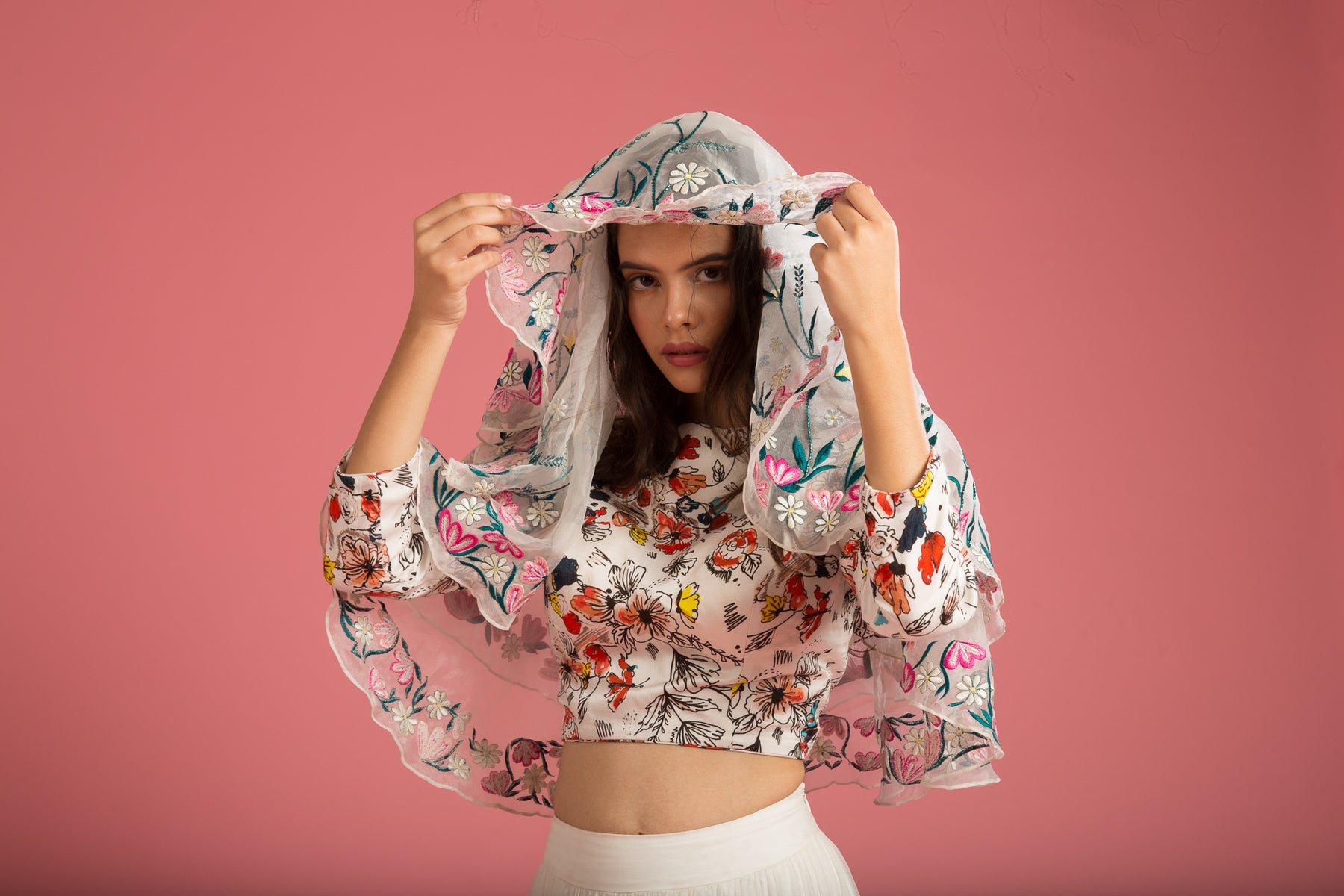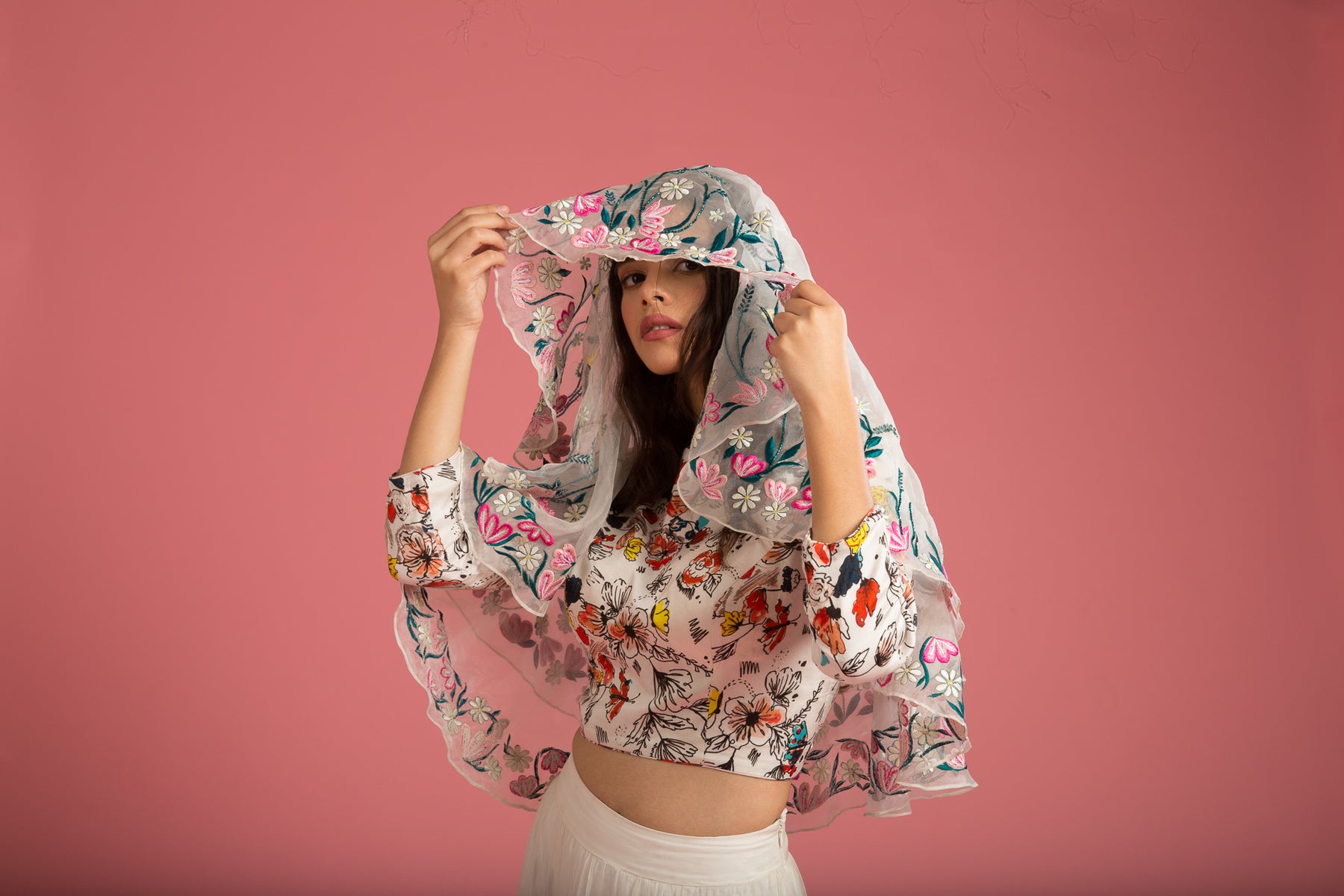 Wild flower embroidered veil