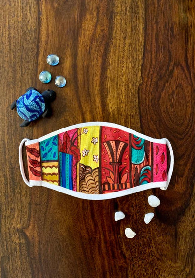 Regular price ₹ 1,250.00 Save ₹ -1,250.00The mask is crafted in 100% cotton fabric. The mask features intricate hand painted detailing (please note this is not digitally printed). They are handcrafted in original Salita Nanda prints. Crafted in 100% cotton, these face masks are triple-layered, with elastic bands to ensure a comfortable fit.